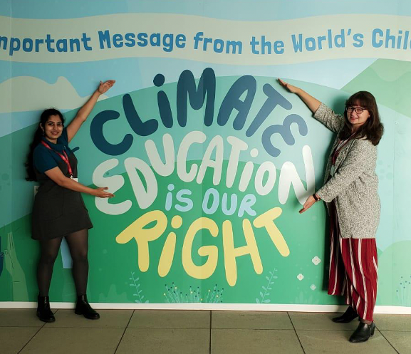 Heeta Lakhani and Marie Claire Graf, the YOUNGO Focal Points (2020-21) at COP26. Photo provided by author.