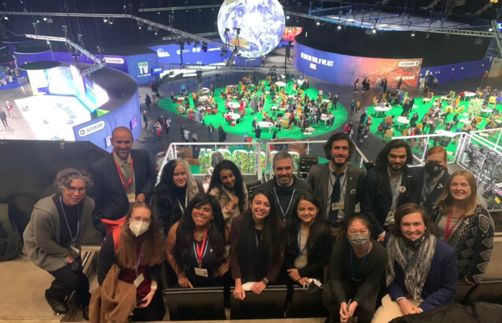Cross-constituency ACE meeting at COP26 with participants from CAN International ECOS and YOUNGO. Photo provided by author.