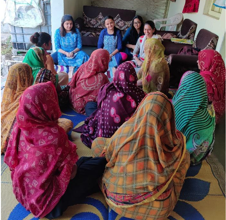 Srishti Singh leads a focus group discussion in rural areas of Gujarat to understand climate-related vulnerabilities of agriculture dependent communities and challenges to education for young girls. Credit: Nitin.