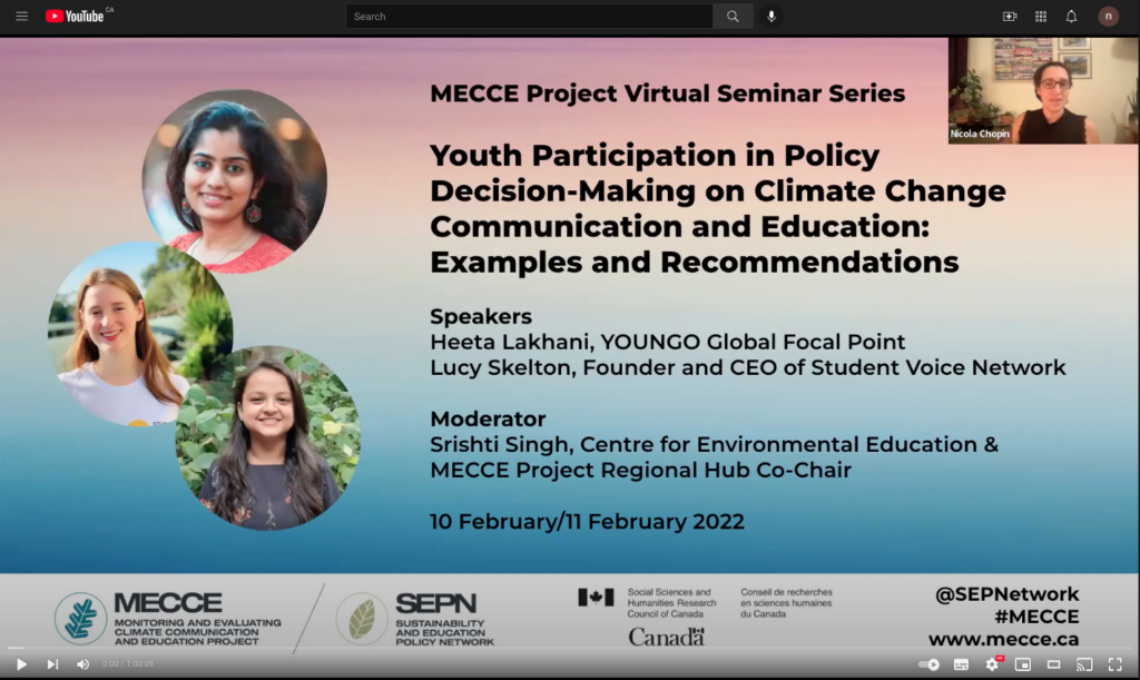 The MECCE Project’s webinar, “Youth Participation in Policy Decision-making on Climate Change Communication and Education” showcased examples of youth participation in policy and decision-making processes related to climate change education at intergovernmental and local levels.