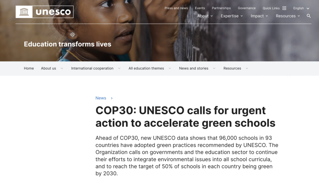 As part of COP activities, UNESCO cited MECCE Project data to support a new call urging governments and the education sector to strengthen integration of environmental and climate change content into all school curricula. The data are reported in a new MECCE Project research brief that shows that the overall depth and breadth of green content in national curricula remains low.