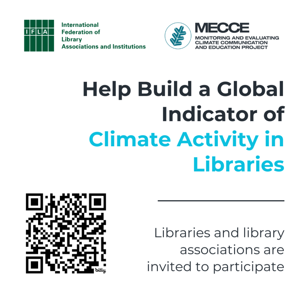 We are partnering with the International Federation of Library Associations and Institutions (IFLA) on a survey to determine the extent to which Libraries encourage and support climate communication and education.