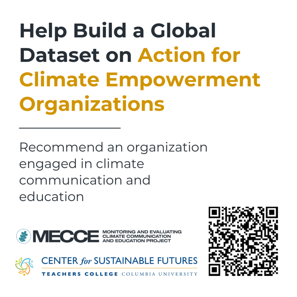 This work involves a global mapping of organizations that are engaged in climate communication and education (CCE), which is also known as Action for Climate Empowerment (ACE).